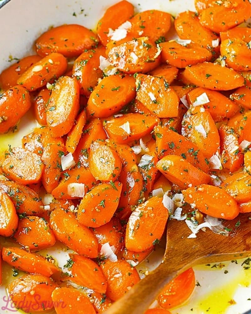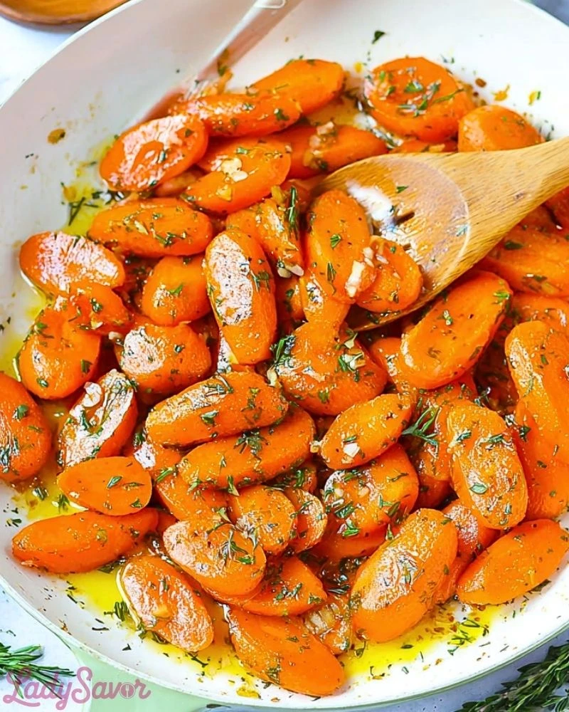 Store any leftover carrots in an airtight container in the refrigerator for up to 3–4 days. To reheat, warm them gently in a skillet over low heat with a small amount of butter or oil to restore their texture and flavor. Avoid microwaving for too long, as it can make them overly soft. If you’d like to freeze them, it’s best to do so before adding fresh herbs, then reheat and finish with herbs after thawing for the best taste.