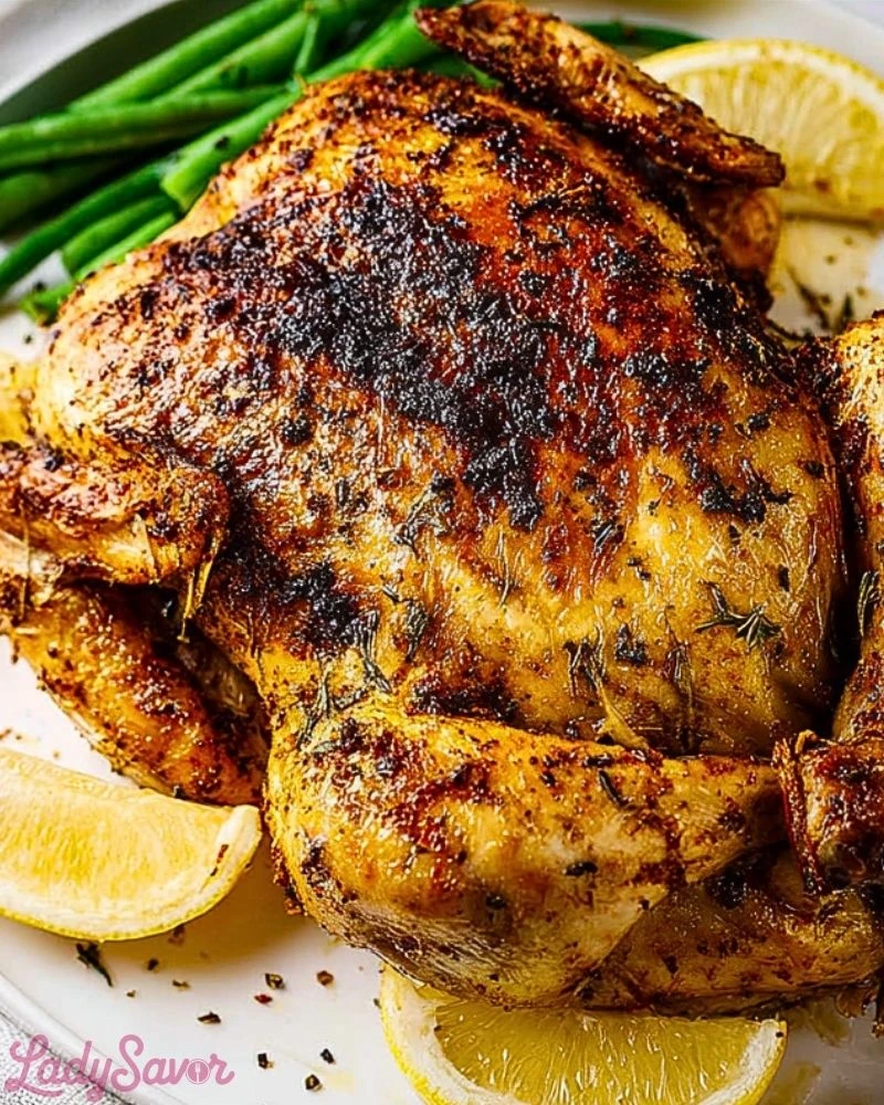 If desired, stuff the cavity with halved lemon and a few sprigs of fresh herbs like rosemary or thyme. This infuses subtle aromatics into the chicken as it cooks.