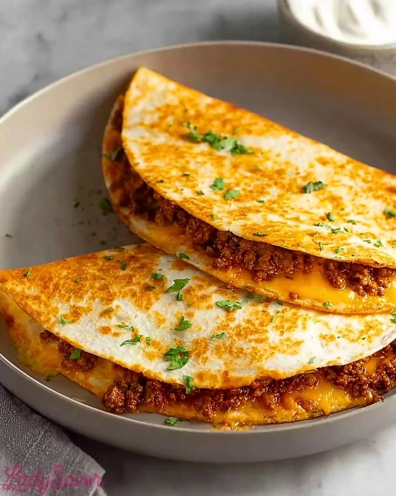 Cook the ground beef thoroughly and drain any excess fat to avoid soggy tortillas. Let your skillet get hot before adding the quesadilla to achieve that crispy golden crust. Don’t overstuff — too much filling can make it hard to flip and may cause the cheese or meat to spill out. For even melting, place the cheese directly on the tortilla first, then add the meat and top with more cheese. Press down lightly with a spatula during cooking to help seal the quesadilla and crisp up the outside beautifully.