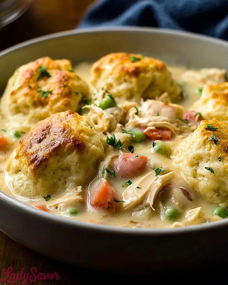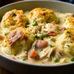 Easy Chicken and Dumplings with Biscuits is the ultimate comfort dish—hearty, creamy, and brimming with home-cooked warmth. It brings together everything you love about a cozy dinner in one pan: flavorful chicken, satisfying vegetables, and fluffy biscuits. Whether you’re feeding a family or looking for leftovers to enjoy through the week, this dish hits all the right notes. Simple, satisfying, and endlessly customizable, it’s a recipe worth keeping in your regular rotation.