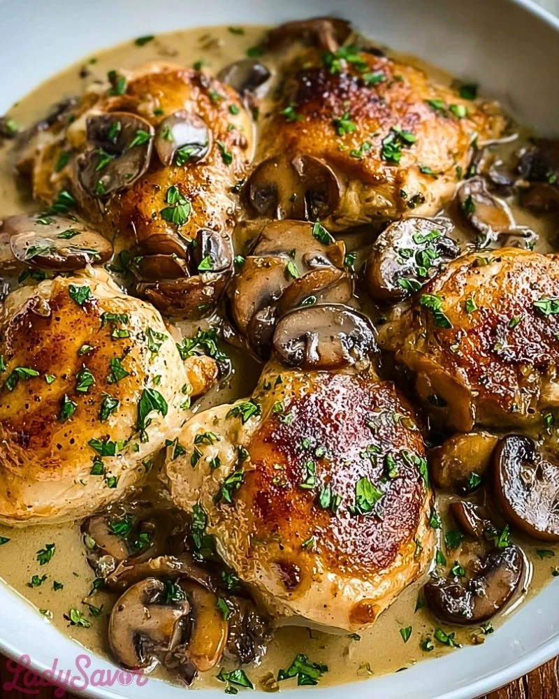For the best results, use chicken breasts or thighs that are similar in size to ensure even cooking. Don’t skip seasoning your meat generously with salt and pepper before searing—this lays the foundation of flavor. When searing, let the chicken rest undisturbed in the hot pan to build that beautiful golden crust. Opt for cremini or baby bella mushrooms for deeper flavor, and make sure to scrape up all those brown bits from the pan after cooking the chicken—they hold the secret to a more intense sauce. Finally, temper your cream before adding to prevent curdling, especially if your pan is still very hot.