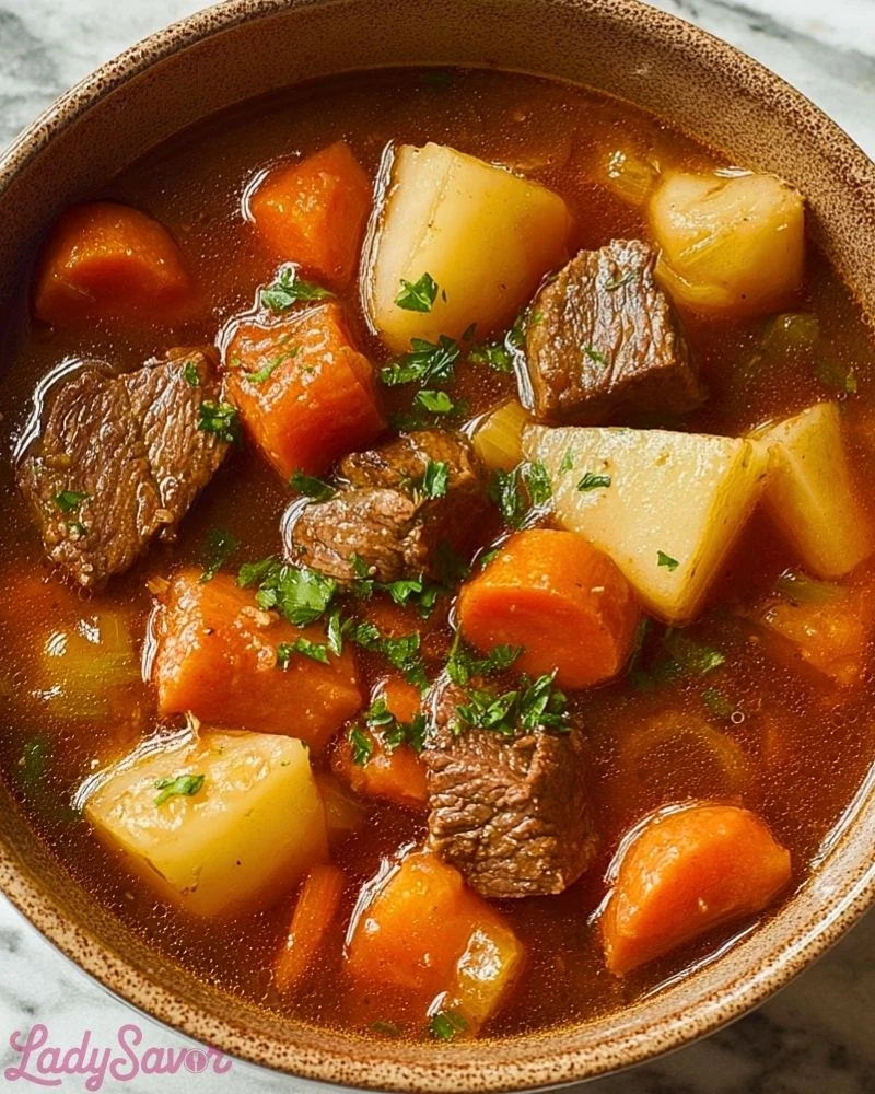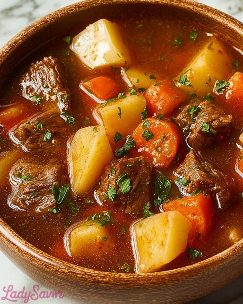 If you prefer a thicker broth, whisk together 2 tablespoons of flour or cornstarch with cold water. Stir into the stew and let it cook for another 20–30 minutes until thickened.