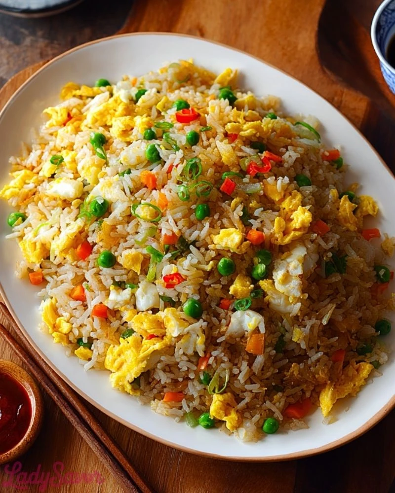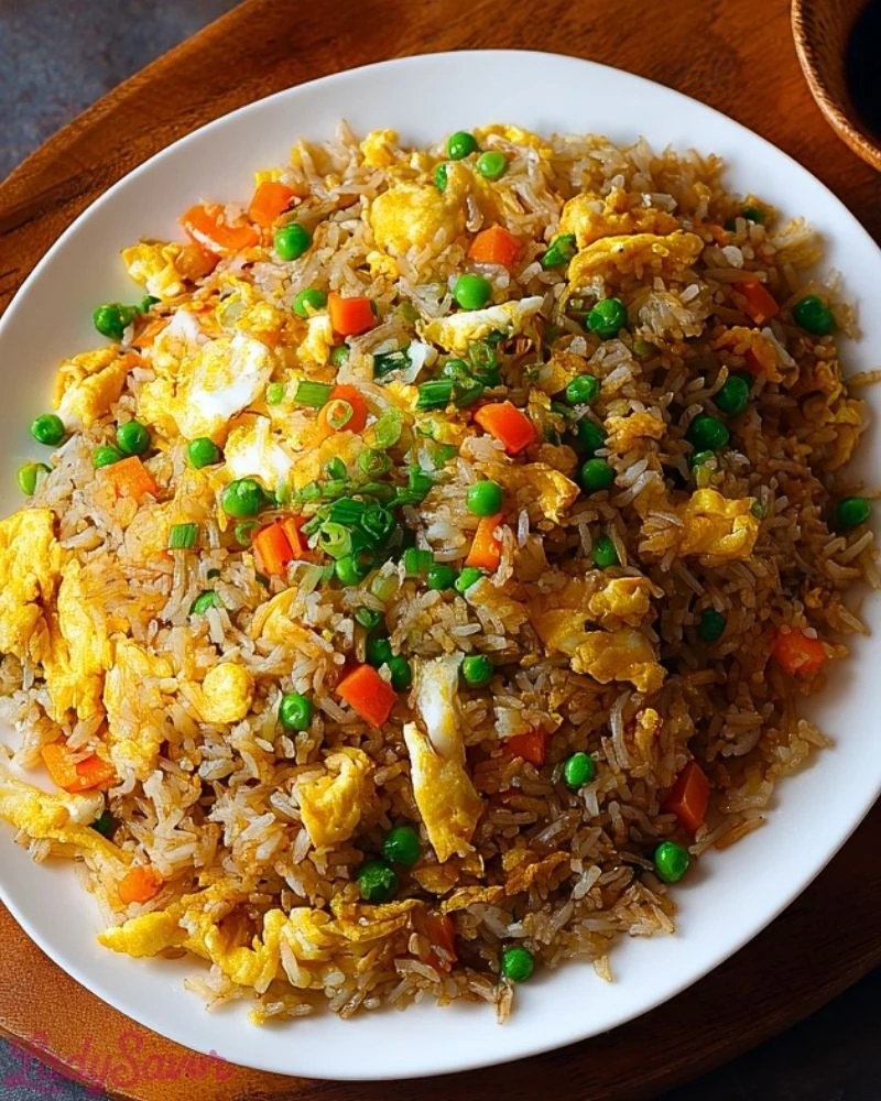 Use day-old cold rice if possible—fresh rice tends to be too moist and clumpy. Chop all your vegetables before turning on the stove so you can move quickly once cooking begins. Scramble the eggs separately for soft, fluffy curds that hold their own in the dish. Don’t overload the pan; fry in batches if needed to avoid steaming the ingredients. And finally, cook on high heat to get that classic stir-fry texture and smoky aroma.