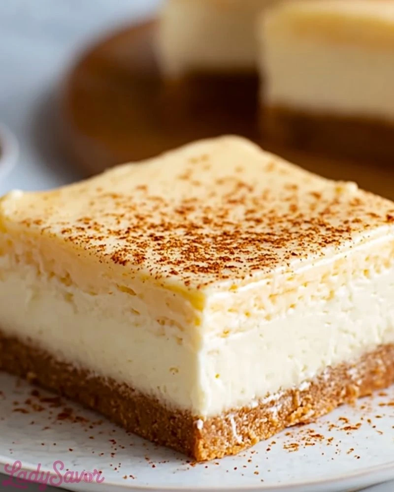 Eggnog Cheesecake Bars benefit greatly from proper chilling time, which enhances both the texture and flavor. Don’t rush the cooling process—letting them sit overnight is ideal. Also, using high-quality eggnog (preferably full-fat and spiced) adds richness and depth. If you’d like an extra decorative flair, top with a light dusting of cinnamon or nutmeg, or even a dollop of whipped cream when serving.