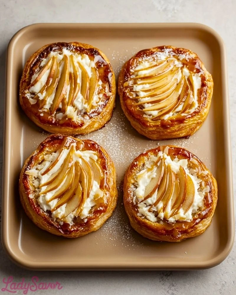 The Espresso Apple Cream Cheese Danish is a bakery-style pastry that brings together flaky, golden layers with a rich and aromatic filling. Buttery puff pastry forms the base, cradling a smooth cream cheese center infused with espresso notes, then topped with tender apple slices that caramelize beautifully as they bake. The contrast between the crisp exterior and the creamy, fruit-filled middle makes every bite feel indulgent yet balanced.