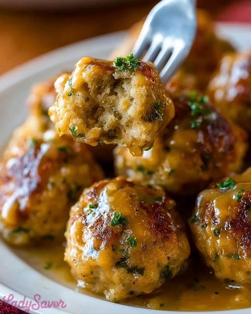 Every holiday, without fail, Grandma Dot’s Stuffing Balls made an appearance on our family table. Golden brown, fragrant with herbs, and smothered in a light savory gravy, they were more than just a side dish—they were a comforting tradition. I remember sneaking a few off the baking tray before dinner, still steaming hot, and always being caught—but never scolded.
