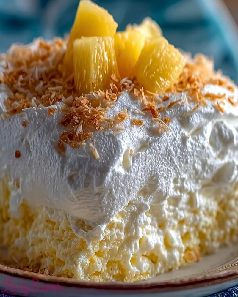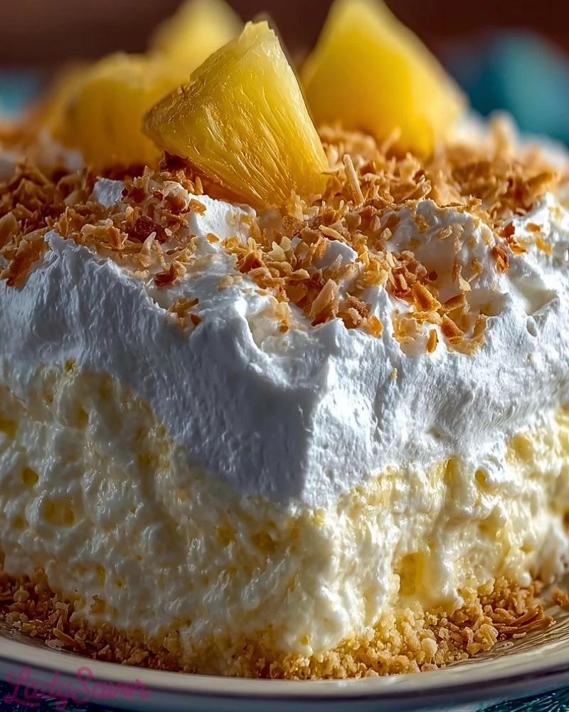 There’s something about the combination of pineapple and coconut that just works. The pineapple adds a juicy, slightly tangy sweetness, while the coconut brings a subtle richness and texture. When these flavors are folded into a fluffy, creamy base, the result is a dessert that feels both comforting and refreshing at the same time.
