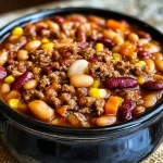 What makes cowboy beans so irresistible is their hearty texture and sweet-meets-savory profile. As everything simmers slowly, the ingredients marry beautifully — the spices mellow, the beans soak up all the delicious juices, and the meat becomes incredibly tender. It’s a perfect set-it-and-forget-it meal, ideal for busy families or anyone craving rustic, home-cooked goodness with minimal hands-on effort.