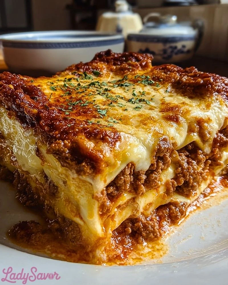 Few dishes bring the same comfort and satisfaction as a bubbling, cheesy, sauce-layered lasagna straight from the oven. Whenever I make this Heavenly Homemade Lasagna, I know I’m not just cooking dinner—I’m building something rich, hearty, and memorable. The golden, crispy edges and velvety layers of meat sauce and cheese always draw people to the table before I’ve even had a chance to slice into it.