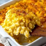 Preheat your oven to 375°F (190°C). Lightly grease a 9×13-inch baking dish. Pour the cheesy pasta mixture into the dish and spread evenly. In a small bowl, combine panko breadcrumbs with olive oil or melted butter. Sprinkle this mixture evenly over the top of the mac and cheese. For extra cheesy top, you can sprinkle a bit more cheddar or Parmesan before baking.