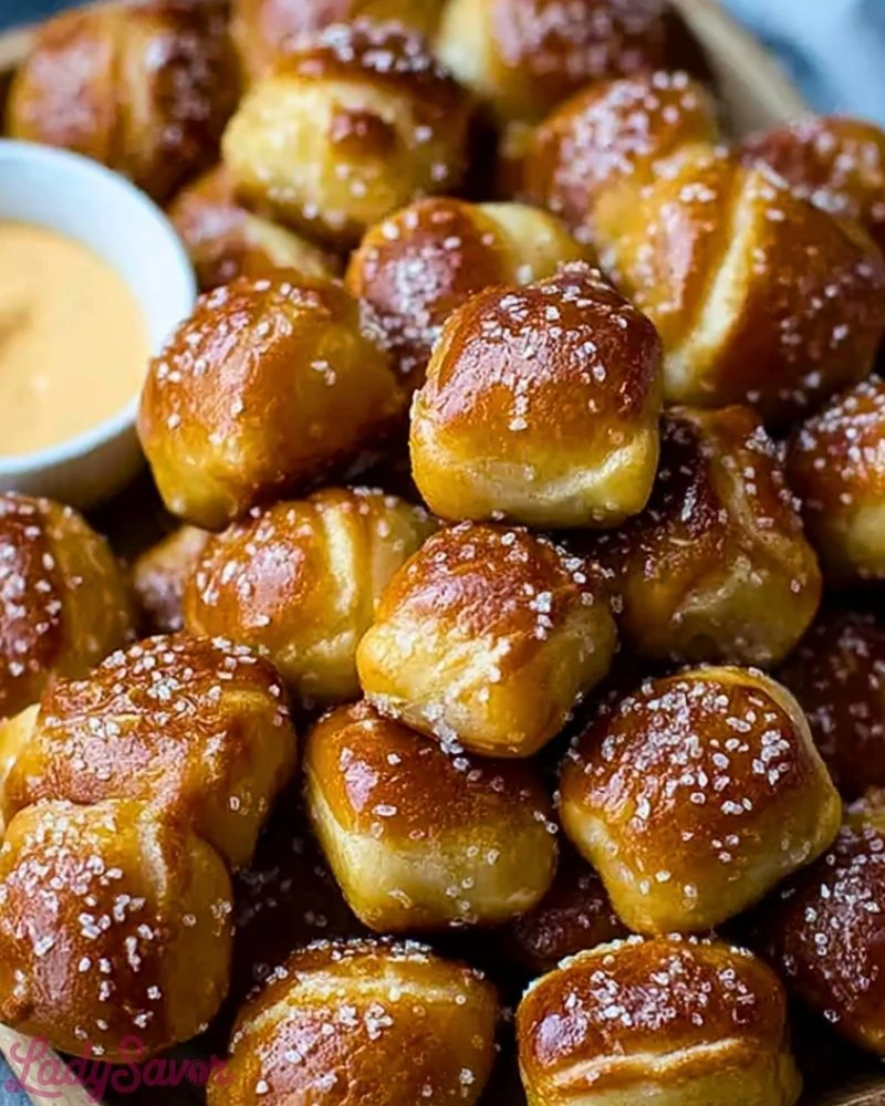 Store any leftover pretzel bites in an airtight container at room temperature for up to 2 days. For longer storage, refrigerate them for up to 5 days, though they may lose some of their softness. To reheat, place them in a preheated oven at 350°F (175°C) for about 5–7 minutes or until warmed through. You can also freeze them in a sealed bag for up to 2 months; just thaw and reheat before serving to bring back their soft texture.