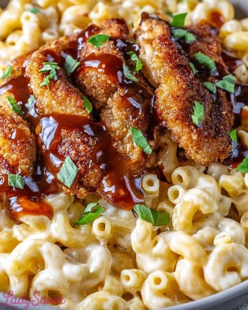 Honey Pepper Chicken Mac & Cheese is a flavor-packed twist on a beloved classic. Creamy, cheesy pasta paired with crispy chicken and drizzled in sweet-spicy glaze—it’s comfort food taken to the next level. Whether you’re feeding a crowd or just treating yourself, this recipe delivers big on taste and texture. Save it, share it, and don’t be surprised when it becomes a regular in your dinner rotation.