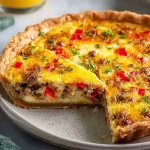 This Roasted Red Pepper And Sausage Quiche brings warmth, flavor, and color to your breakfast or brunch table. With its flaky crust, creamy filling, and savory-sweet balance, it’s a dish that satisfies every time. Whether you’re hosting a gathering or simply planning ahead for the week, this quiche delivers both taste and convenience in one beautiful slice.