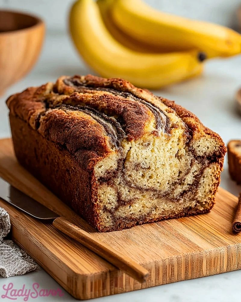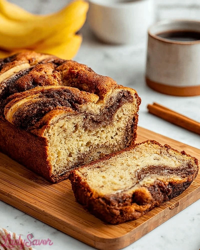 Use bananas that are heavily speckled or even black on the outside – the riper, the better, for maximum moisture and flavor. Toasting the nuts before folding them in brings out their depth and adds a rich crunch. When swirling the cinnamon-sugar layer, gently drag a butter knife through the batter in an ‘S’ motion – this creates the signature marbled look without overmixing. Let the loaf cool in the pan for 10 minutes before transferring it to a wire rack – this helps it firm up and keeps the structure intact.