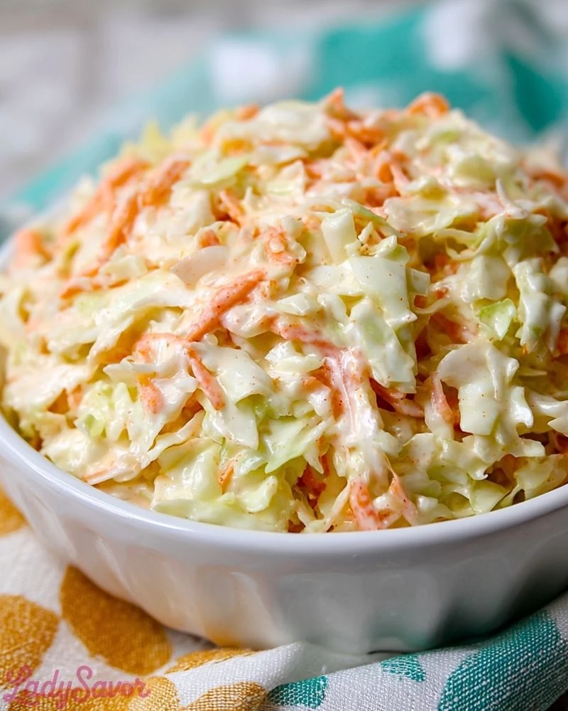 Preparing this coleslaw doesn’t take long at all — in fact, it’s one of the quickest sides you can whip up. From chopping to mixing, the hands-on time is about 15 to 20 minutes if you’re chopping fresh cabbage and carrots yourself. If you use pre-shredded mix, you can cut that time in half.