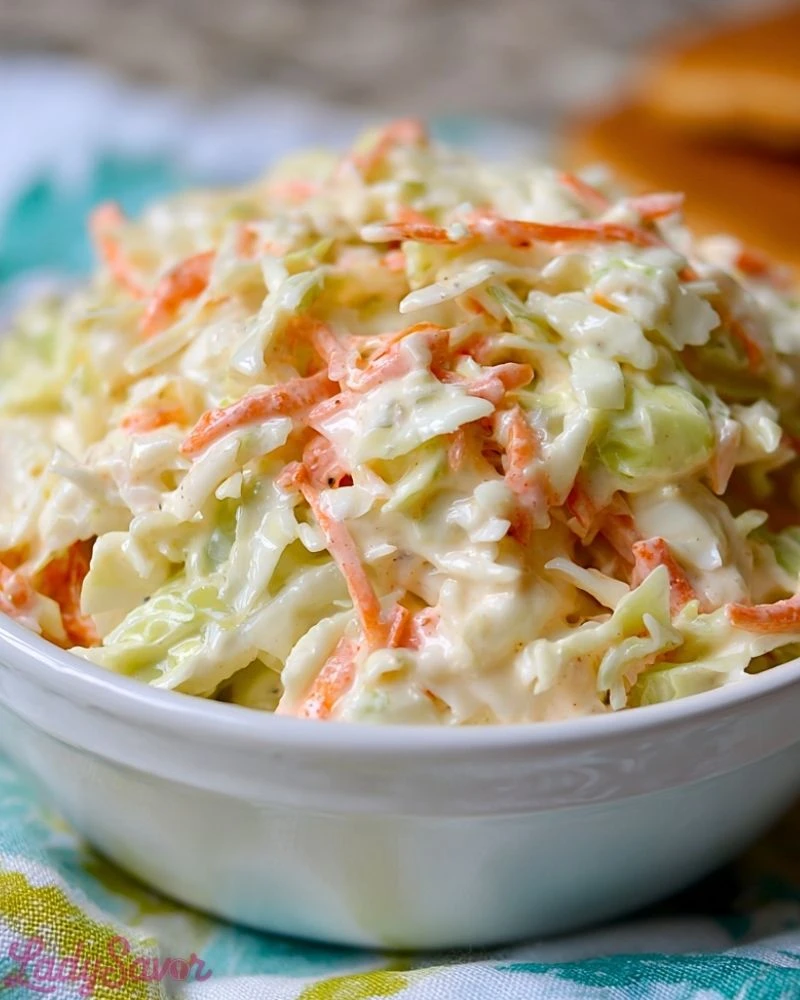 This version is incredibly easy to whip up, using basic ingredients and just a bit of prep work. I love making it ahead of time — in fact, it tastes even better after sitting in the fridge for a few hours. Whether you’re serving it at a summer BBQ, a holiday gathering, or just craving that familiar flavor, this coleslaw never disappoints.
