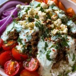 Lamb Gyro Bowls with Dreamy Creamy Sauce bring together all the vibrant, bold flavors of a classic Mediterranean gyro in a modern, easy-to-make rice bowl. Juicy, seasoned ground lamb is layered over fluffy rice, then topped with cherry tomatoes, red onions, crumbled feta cheese, and finished with a drizzle of rich, herb-loaded yogurt sauce. It’s a satisfying combination of warm, savory, tangy, and fresh—all in one spoonful.