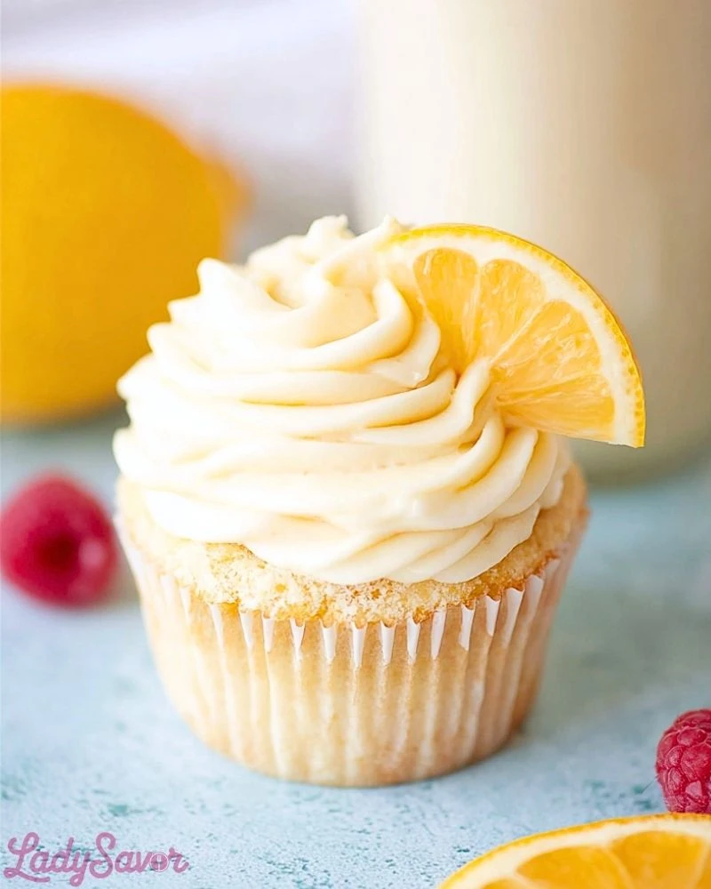 Once the cupcakes are completely cooled, pipe or spread the lemon buttercream on top. Garnish with a small lemon wedge or zest for an extra pop.