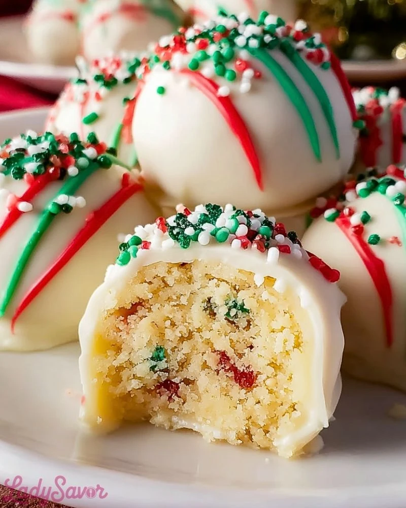 I’ve always had a soft spot for those nostalgic Little Debbie Christmas Tree Cakes—they’re sweet, festive, and instantly bring back holiday memories. Turning them into bite-sized cake balls feels like giving a childhood favorite a fun, modern twist. The creamy coating, the soft cake center, and those bright red and green sprinkles make them almost too pretty to eat.