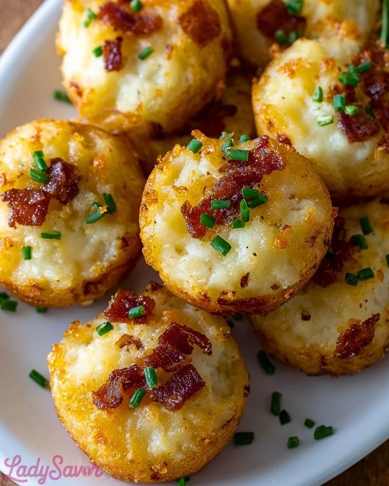 Golden, crispy on the outside and irresistibly creamy on the inside, Loaded Mashed Potato Bites are the ultimate comfort food snack with a gourmet twist. Packed with rich mashed potatoes, savory bacon bits, melted cheddar cheese, and just the right kick of chives or green onions, each bite delivers a warm, cheesy burst of flavor that’s hard to resist. These mini delights are perfect for parties, game days, or anytime you’re craving something indulgent yet easy to make.