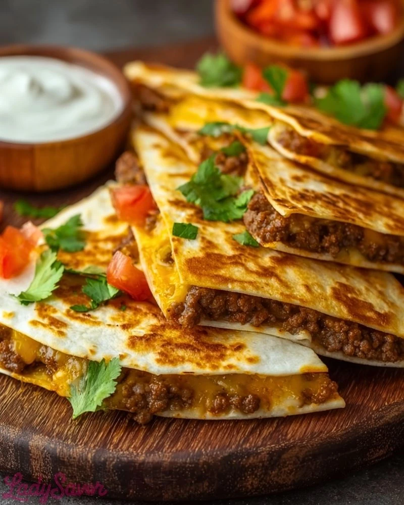 The cooking process itself moves fast. Browning the beef and building the flavor takes about 10 minutes, while assembling and crisping the quesadillas only takes another 10 minutes. Because everything cooks in one pan, cleanup is minimal, making it ideal for busy weeknights or quick lunches.