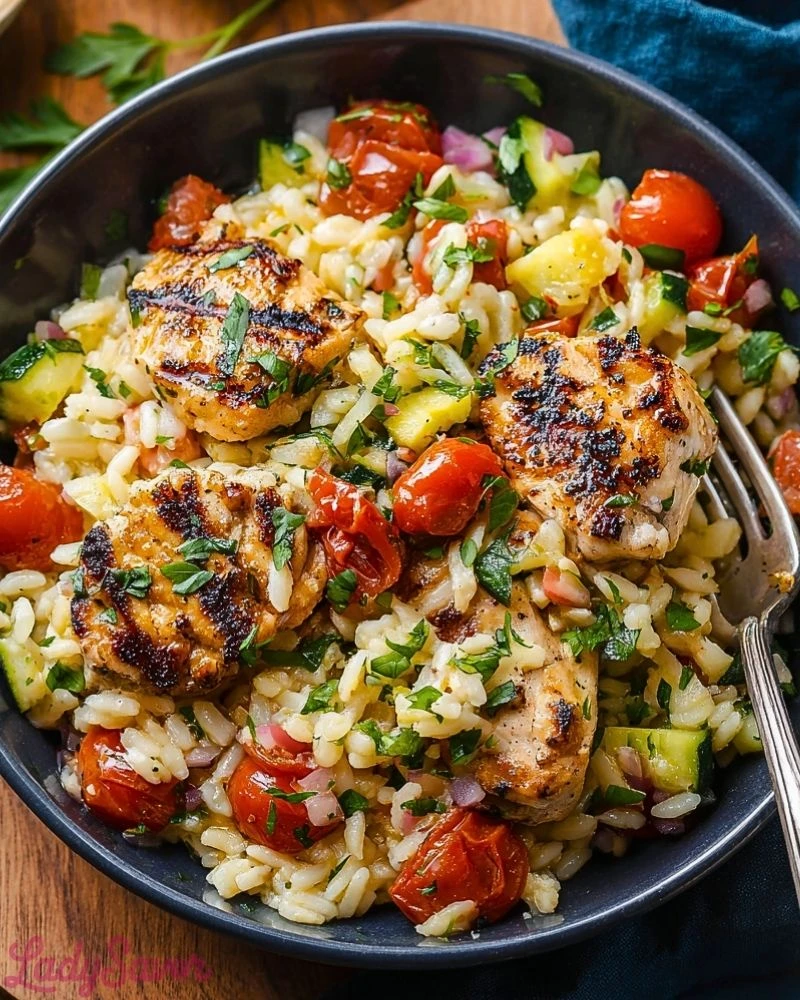 Start by marinating the chicken for at least 20–30 minutes to enhance its flavor and tenderness. Chop all vegetables into evenly sized pieces to ensure consistent texture in every bite. Cook the rice ahead of time or use leftover rice to save time during busy evenings. When searing the chicken, avoid overcrowding the pan so each piece develops a nice crust. Finally, finish with fresh herbs like parsley or basil to brighten the entire dish and bring out its Mediterranean character.
