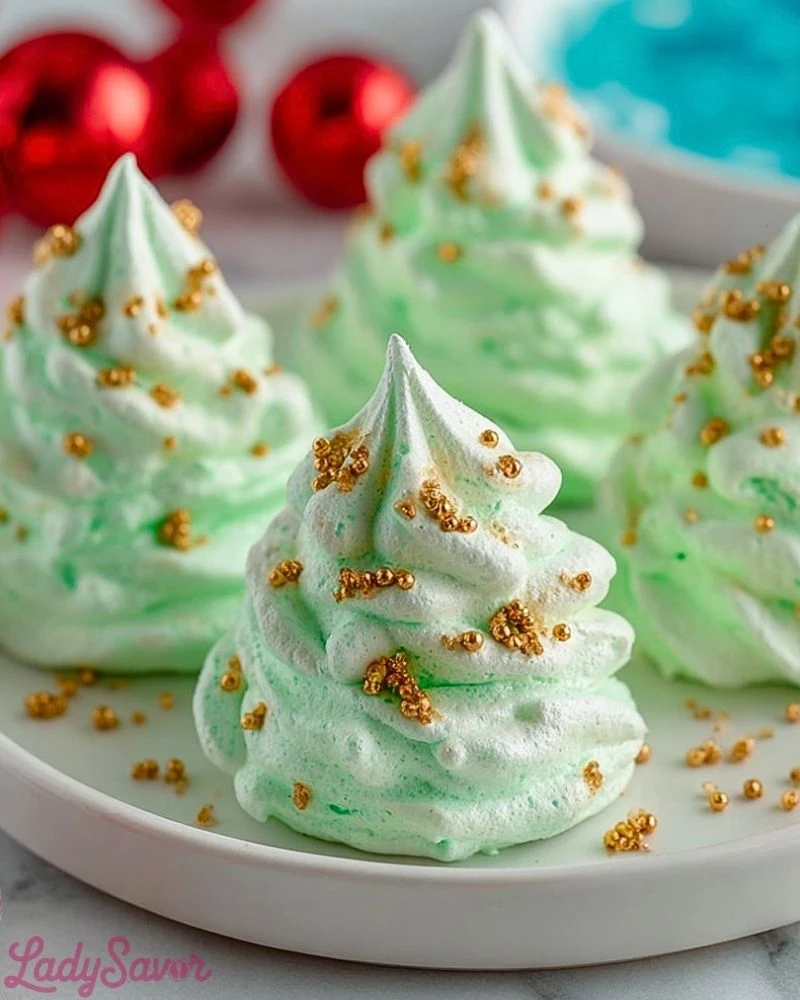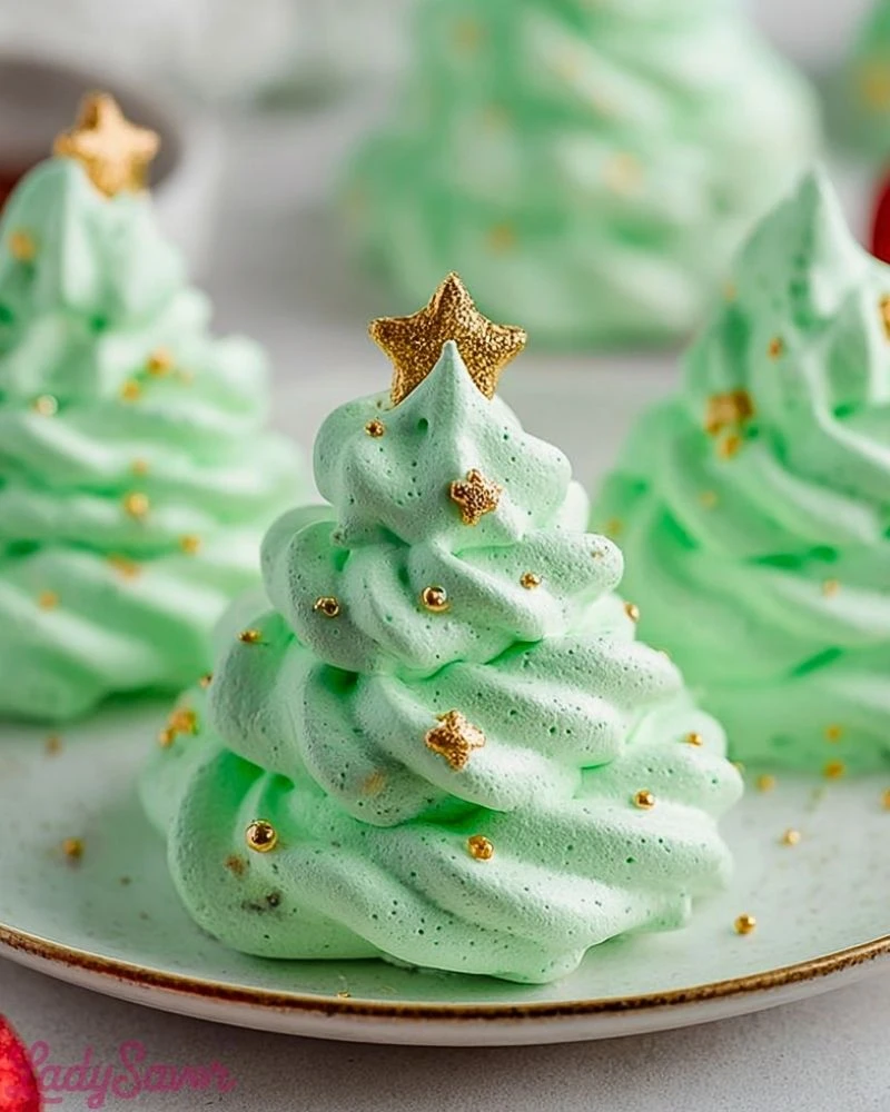 Meringue Christmas Trees are delicate and humidity-sensitive, so it’s important to store them in a cool, dry place. These cookies are naturally gluten-free and dairy-free, making them a great option for a variety of dietary needs. You can switch up the colors and decorations to suit other holidays or events, too—pastel trees for Easter or pink and red hearts for Valentine’s Day. This recipe is also ideal for edible gifting, especially when packaged in clear bags or festive tins.