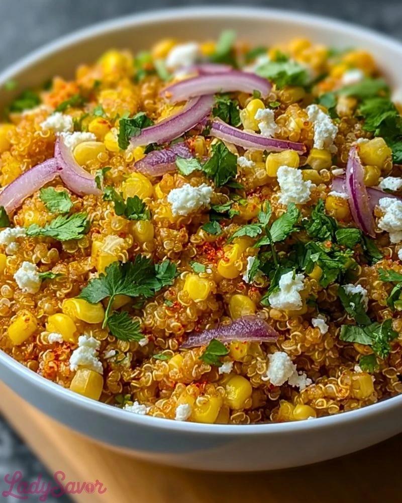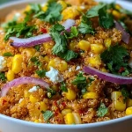The result? A salad that bursts with sweet corn kernels, creamy cheese crumbles, smoky spices, fresh cilantro, and a citrusy kick—all nestled into a protein-packed quinoa base. Whether I’m meal-prepping for the week or hosting a backyard cookout, this vibrant dish always disappears fast. It’s colorful, full of texture, and most importantly, completely crave-worthy.