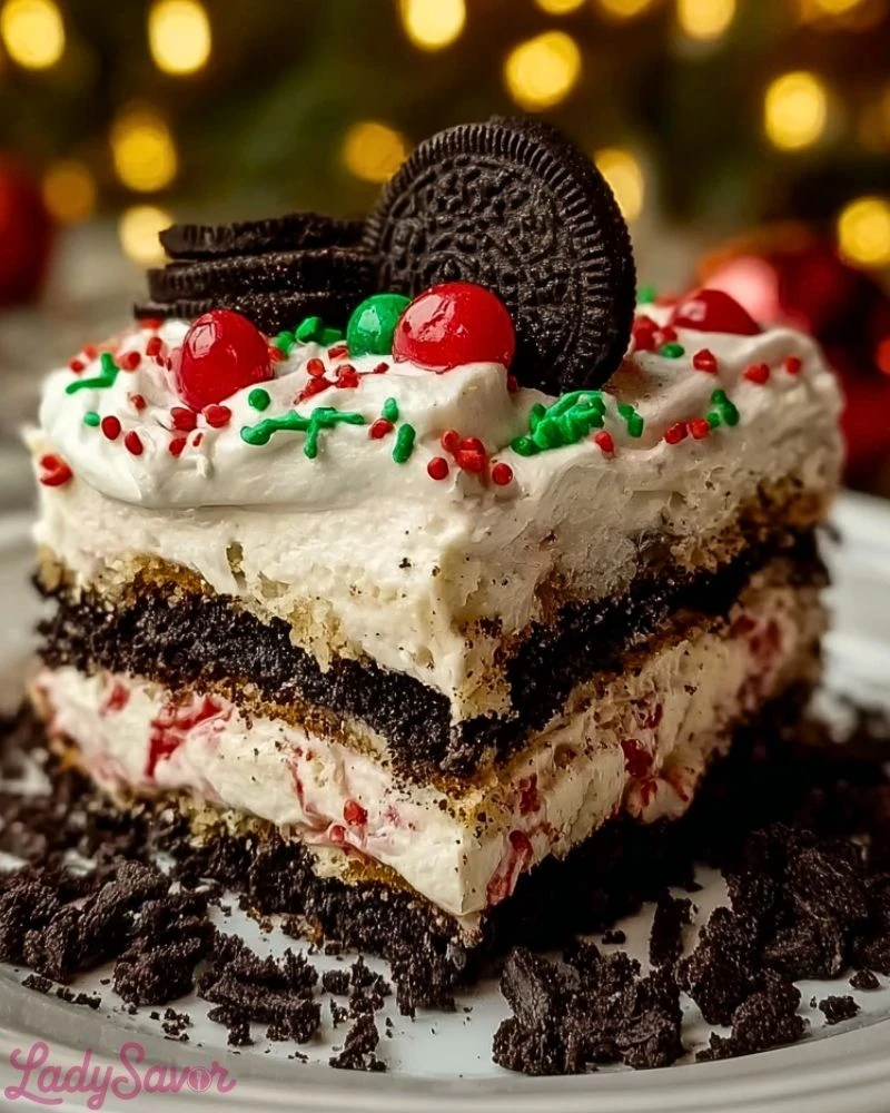 What I love most is how this dessert instantly brings a cozy, cheerful vibe to any table. With its pops of red and green and that irresistible cookies-and-cream flavor, it’s the kind of treat I find myself making again and again during the holiday season.