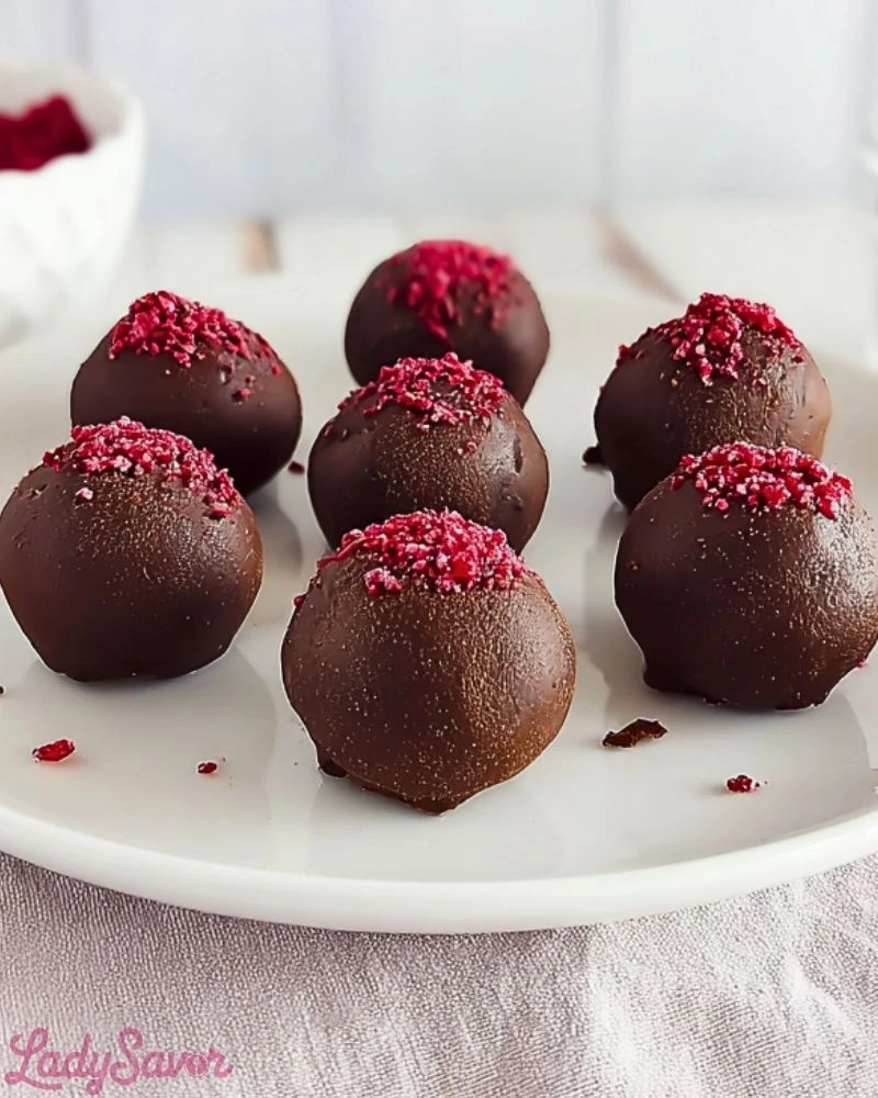These truffles strike a beautiful balance between deep chocolate richness and bright raspberry flavor. The texture is smooth and creamy inside, with a delicate chocolate shell that gives a satisfying snap. They’re naturally portioned, easy to store, and ideal for gifting or serving at gatherings.
