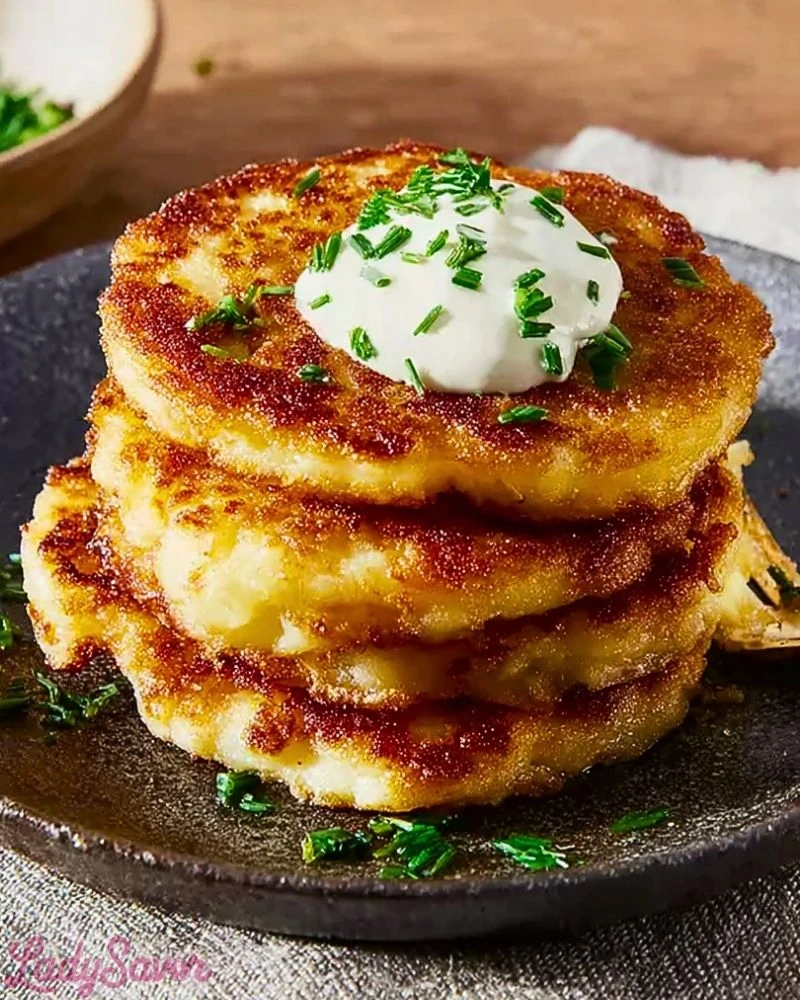 Each bite delivers a satisfying crunch that gives way to creamy, buttery potato goodness. Perfectly seasoned and often topped with sour cream and fresh chives, these cakes carry the rustic charm of traditional farmhouse cooking. They’re incredibly easy to make, requiring minimal prep and just a few essential tools, yet the end result feels like something truly special.
