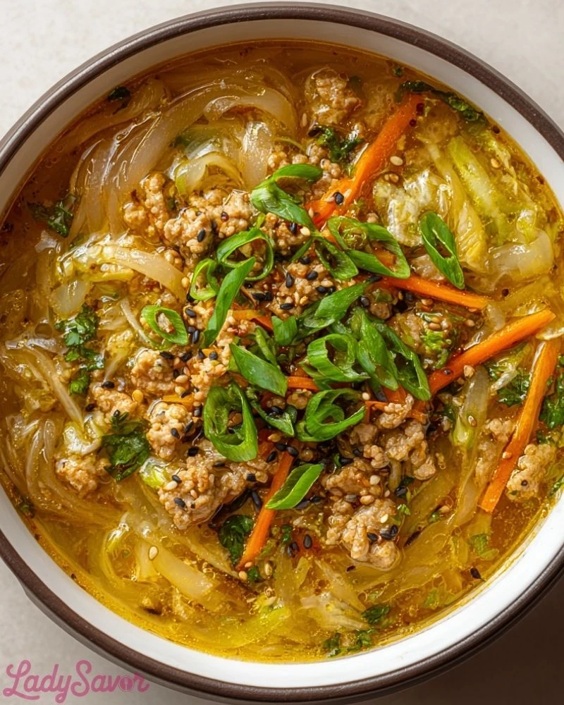 I love recipes that take comfort food and give them a nourishing, lighter twist—and that’s exactly what this One-Pot Egg Roll Soup delivers. Inspired by the flavors of a classic egg roll, this soup is packed with savory ground meat, sautéed vegetables, and bold Asian-inspired seasoning, all simmered together in a single pot. It’s quick to make, incredibly filling, and has that unmistakable umami-rich flavor that makes you want to go back for seconds.