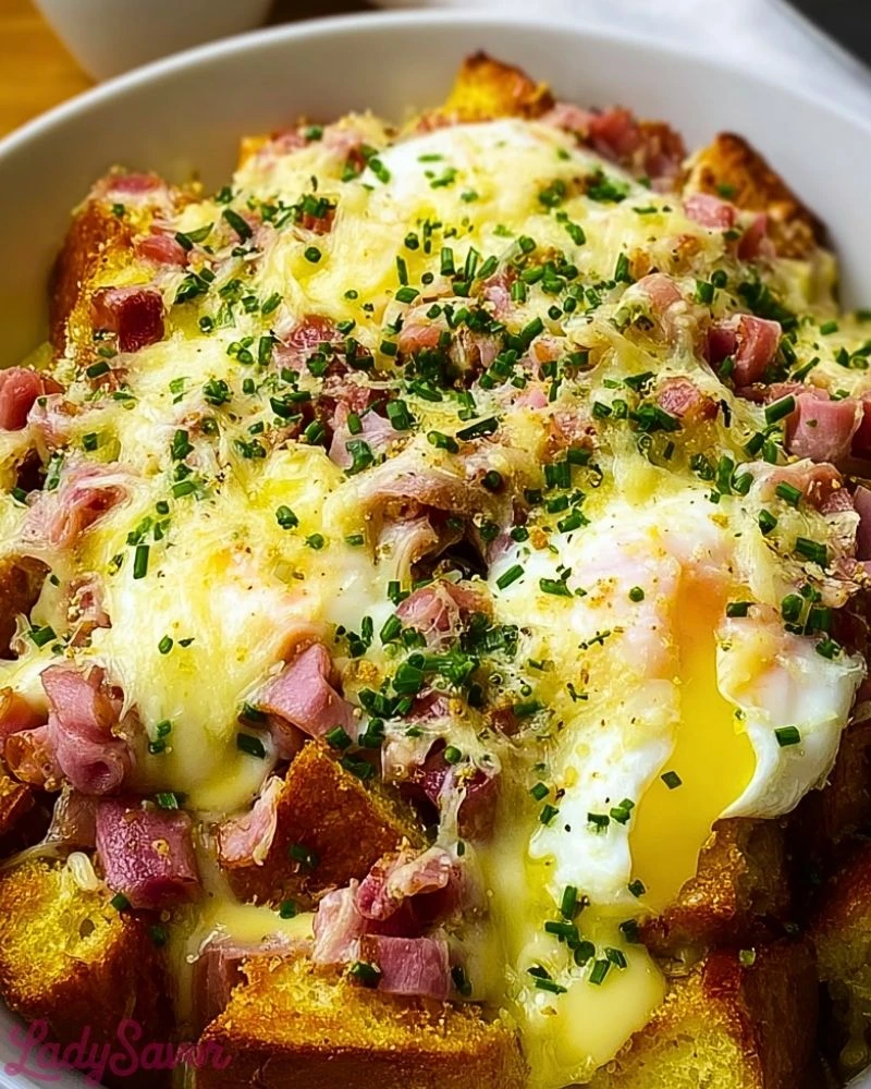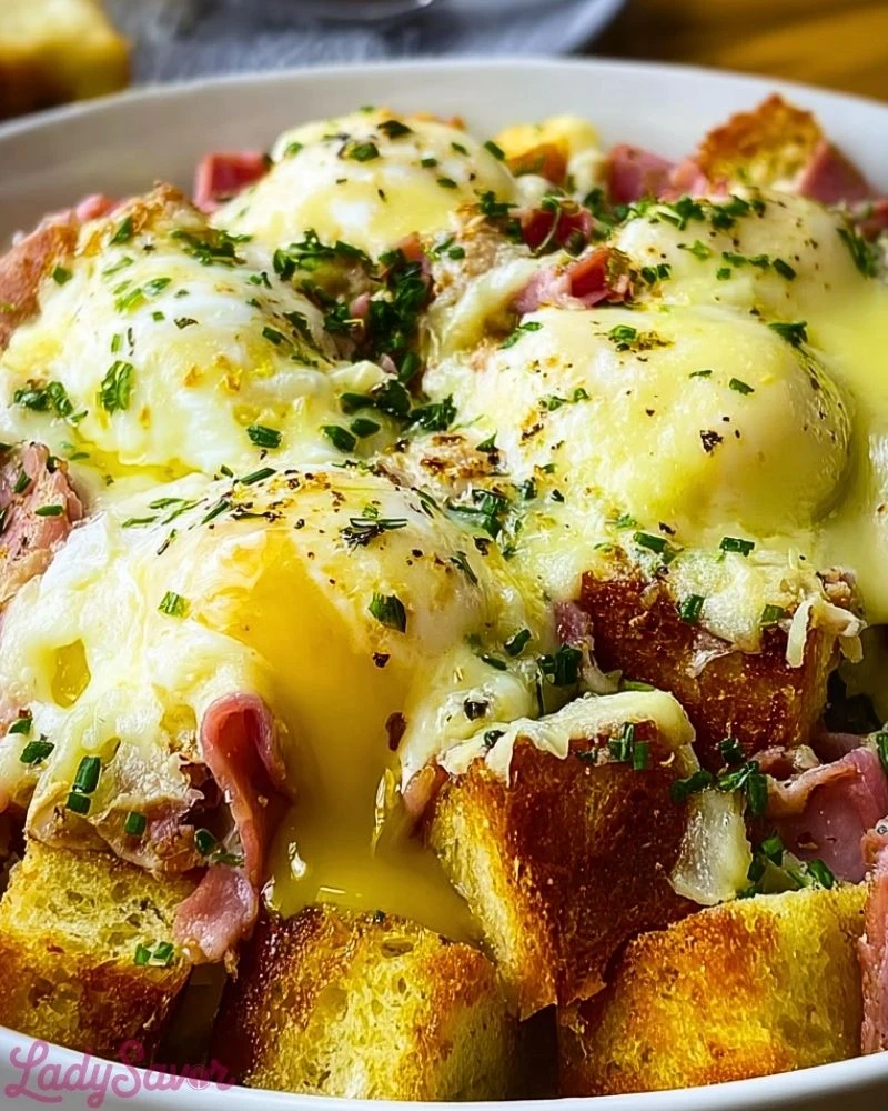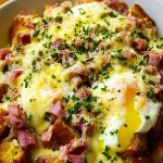 Golden, buttery cubes of toasted bread soak up a rich, savory custard, creating the perfect base for this irresistible Overnight Eggs Benedict Casserole. Each bite delivers layers of smoky ham, creamy hollandaise-inspired richness, and perfectly set eggs that melt into the dish. It’s everything you love about the classic brunch favorite—transformed into a comforting, crowd-pleasing bake.