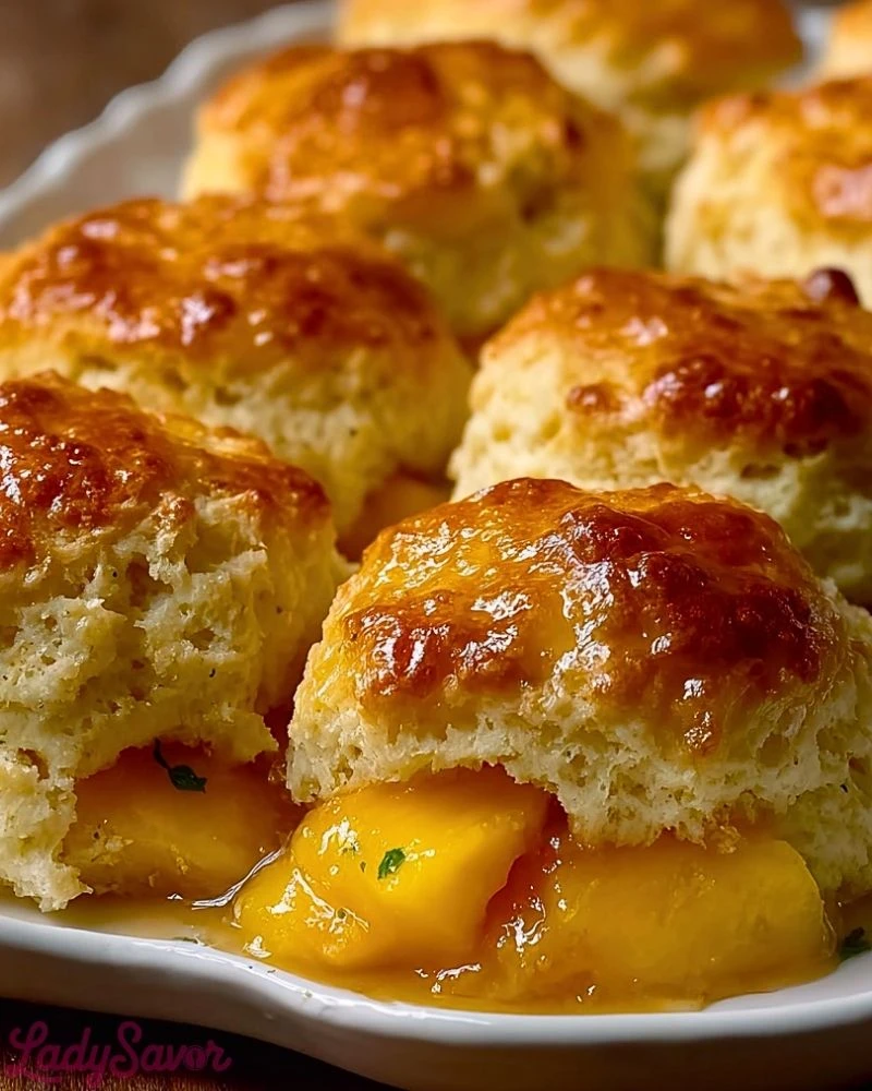 These biscuits are a marriage of rustic charm and pure indulgence. You’ll love the gooey, caramelized peach layer that bubbles up between the biscuits as they bake, soaking the bottoms in sweet buttery syrup. The biscuit dough itself comes together with minimal kneading, and since it “swims” in butter during baking, it requires no rolling or cutting. It’s a one-pan wonder, and the results are spectacular every time.