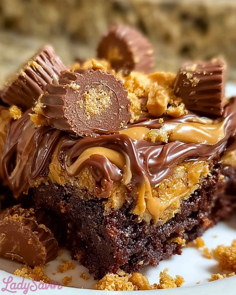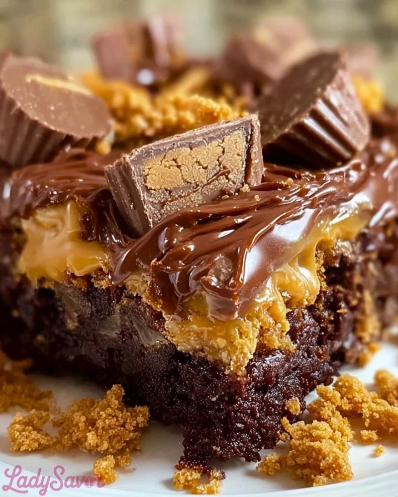 Use a nonstick spray or line your dish with parchment paper to prevent sticking. Chop your peanut butter cups in advance to save time during layering. Don’t overmix or press the ingredients down too firmly – the beauty of a dump cake is its rustic, layered texture. Bake just until the center is set for that perfectly gooey interior. Let it rest for 10–15 minutes before serving to allow the flavors to settle and the chocolate to thicken slightly.