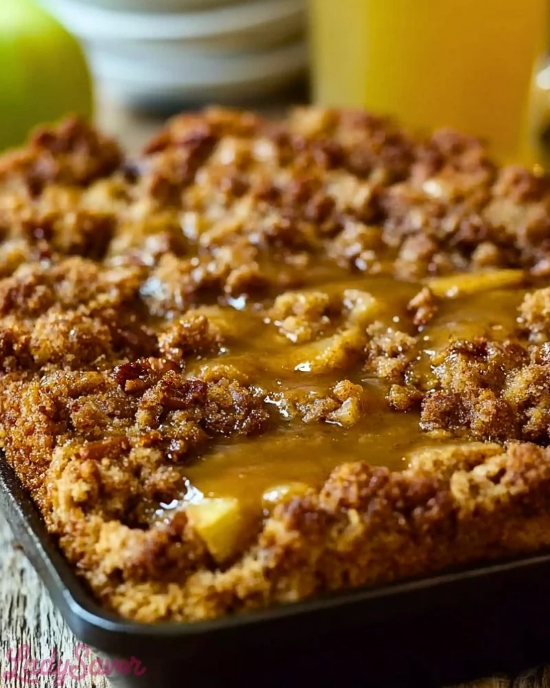 I love making this for weekend brunches, potlucks, or simply when I want to treat myself to a slice of something special with my morning coffee. The layers of spiced apple filling and crisp pecan topping create a perfect balance of textures, while a caramel drizzle takes it over the top. It’s decadent, homey, and deeply satisfying—basically fall in cake form.