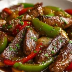 Tender strips of beef, seared to perfection and coated in a savory, glossy sauce — that’s the magic of this Pepper Steak recipe. Infused with the bold flavors of garlic, soy, and ginger, and paired with the satisfying crunch of stir-fried bell peppers, this dish hits every mark for a quick, delicious dinner. It’s a stir-fry classic that transforms everyday ingredients into something crave-worthy.