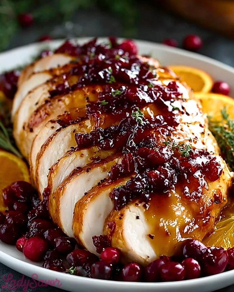 Golden, juicy, and packed with seasonal flavor, this Perfect Cranberry Orange Glazed Turkey Breast is the centerpiece your holiday table has been waiting for. The savory tenderness of roasted turkey pairs beautifully with the sweet-tart glaze of cranberries and zesty oranges, creating a vibrant and festive main dish. Garnished with fresh herbs and citrus slices, it’s a visual showstopper as much as it is a culinary one.