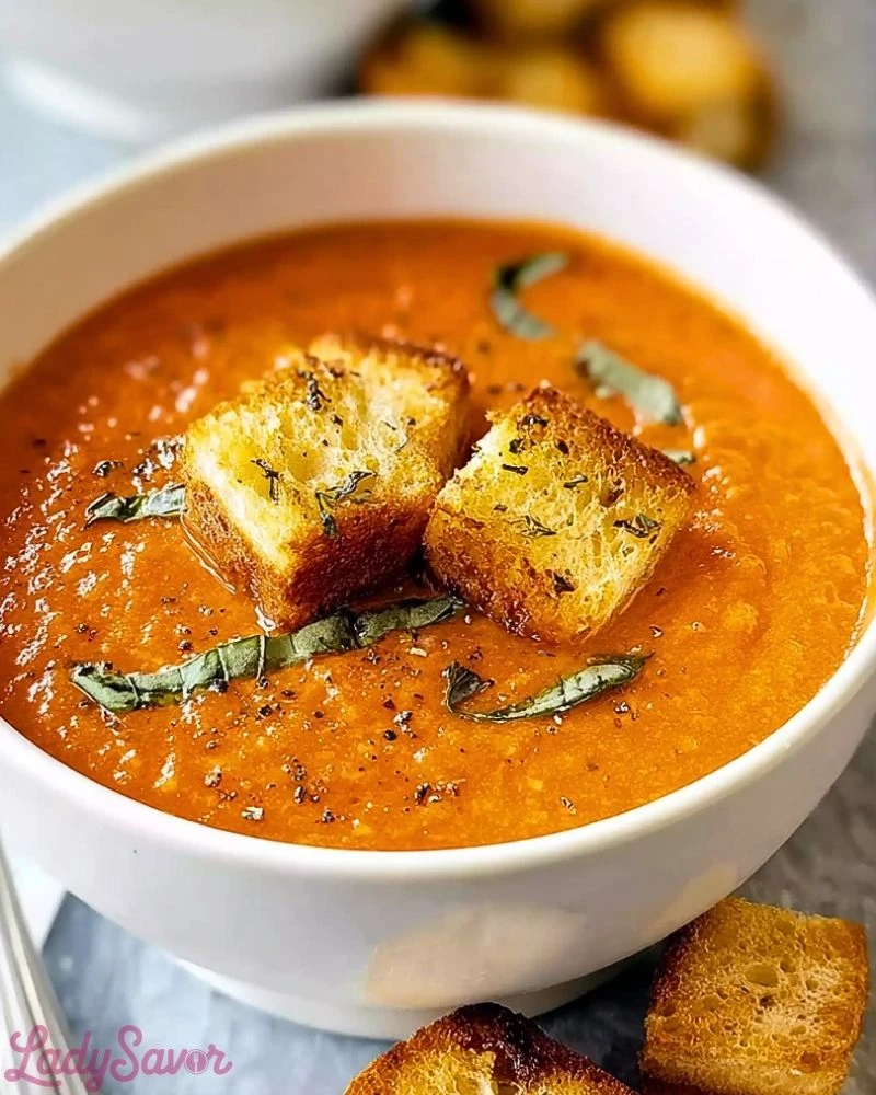 Use ripe Roma or plum tomatoes for the best flavor — they roast beautifully and bring out natural sweetness. Don’t rush the roasting; allow the tomatoes to caramelize and slightly char, which adds a deeper flavor profile. Fresh basil is a must — dried won’t offer the same brightness. For a creamier soup, add a splash of heavy cream or coconut milk toward the end. Lastly, taste as you go and adjust your salt, pepper, or sugar depending on the acidity of the tomatoes.