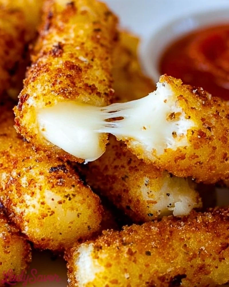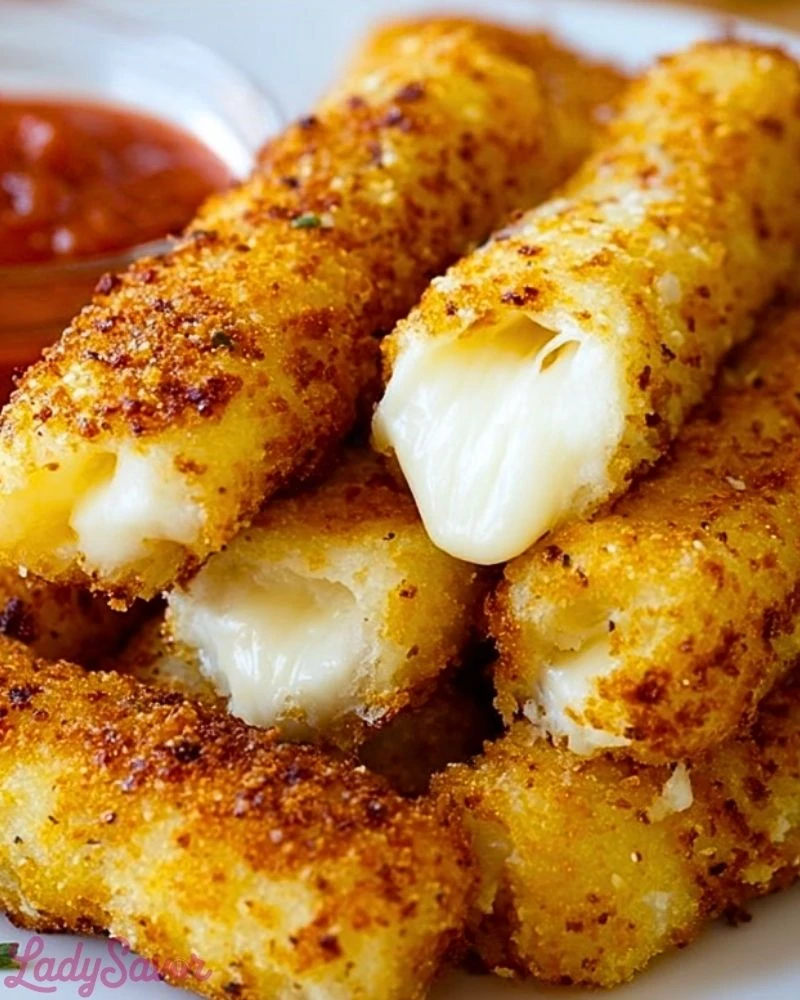 Transfer the fried sticks to a paper towel-lined plate to drain excess oil. Serve immediately while hot and melty inside, with your favorite dipping sauce like marinara, ranch, or garlic aioli.
