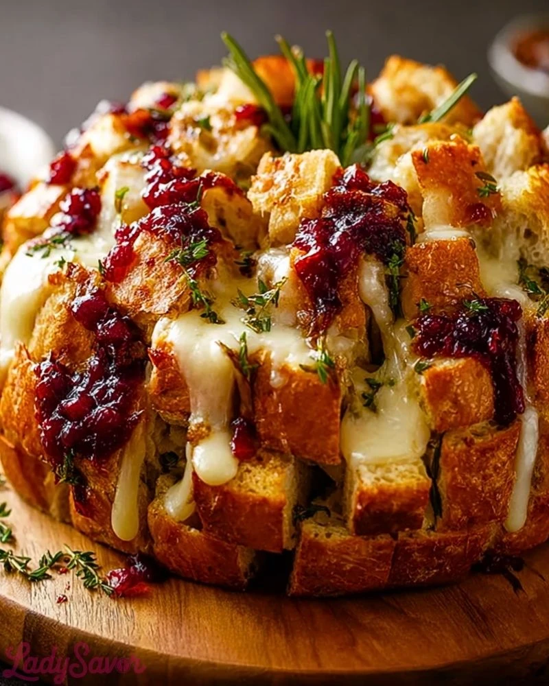 There’s something magical about the way creamy brie melts into the crusty sourdough crevices, mingling with tart cranberry sauce and fragrant herbs. The whole thing bakes into this bubbling, melty, pull-apart delight that people can’t keep their hands off. Whether you’re feeding a crowd or just want to treat yourself, this bread delivers maximum flavor with minimal fuss.