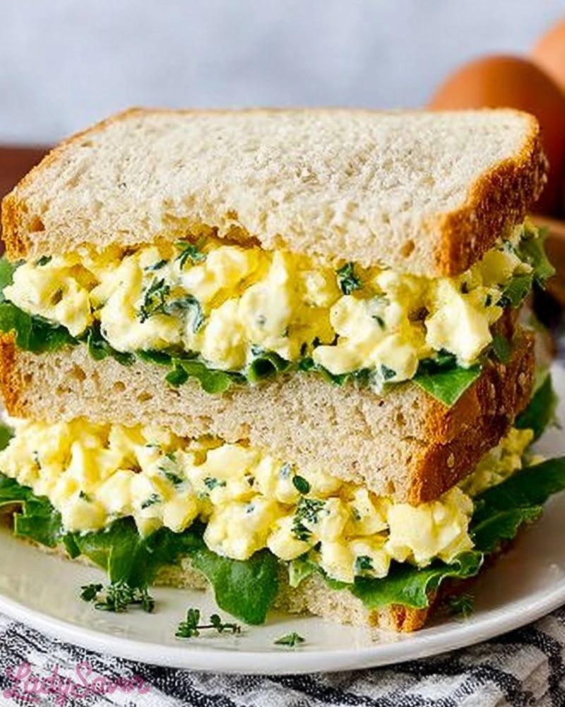 Whether you’re whipping up a quick lunch for work, prepping for a picnic, or craving a light but filling dinner, this egg salad sandwich is a go-to. It’s not only quick and easy, but also customizable — add pickles, herbs, or a dash of mustard to make it your own. Served with crisp lettuce and fresh bread, it’s a classic recipe that proves simplicity can be delicious.