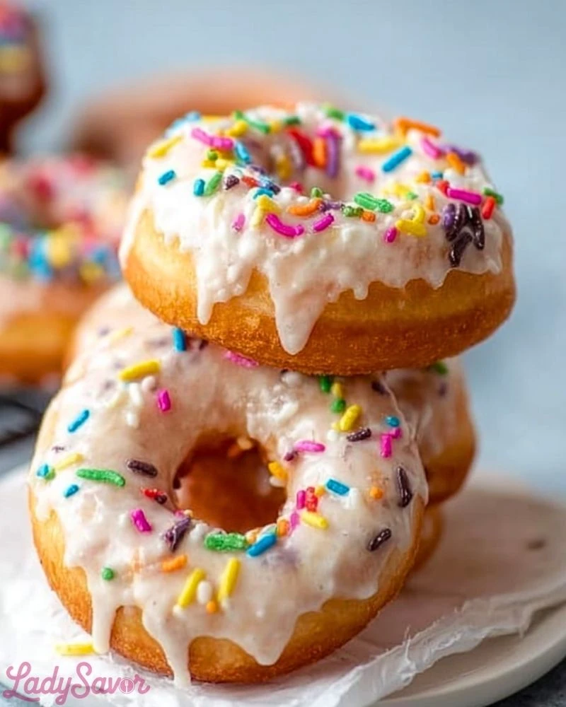 I’ve tested this recipe more times than I can count, adjusting ingredients and methods until I landed on the perfect balance of fluffiness and flavor. What I love most is how approachable it is—even if you’ve never made donuts before, this recipe is super beginner-friendly. The result? Golden donuts with a soft interior, topped with a vanilla glaze and colorful sprinkles that instantly boost your mood. You’re going to love making these just as much as eating them.