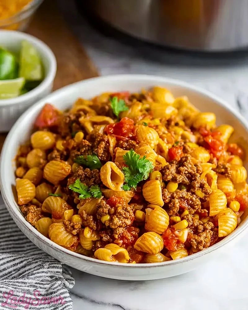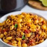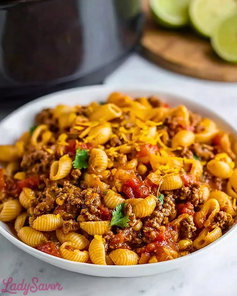 For the best results, use lean ground beef to avoid excess grease, but don’t skip the browning step—it develops flavor that you can’t get by cooking raw meat in the crockpot. If you’re short on time, you can prep everything the night before and refrigerate it until you’re ready to turn on the slow cooker. Don’t overcook the pasta—add it at the right time so it absorbs the flavor without turning mushy. Stirring in shredded cheese at the end adds a creamy finish, and fresh toppings like cilantro or a squeeze of lime can elevate the flavors even more.