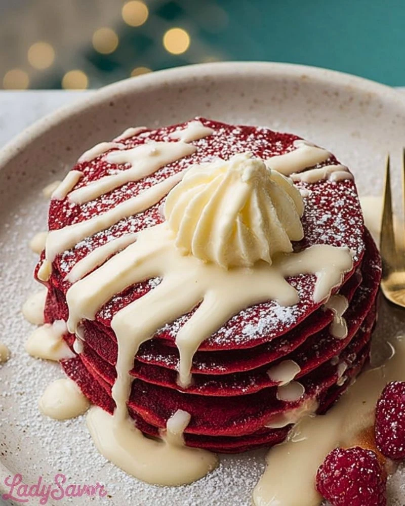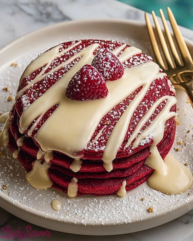 These pancakes are more than just pretty—each bite is fluffy, rich, and satisfying. The subtle cocoa flavor gives a nod to classic red velvet cake, while the hint of vanilla and the creamy glaze brings a lovely balance of sweetness. They’re perfect for holidays, romantic mornings, or just treating yourself. Plus, they’re incredibly easy to make at home without any fancy equipment.