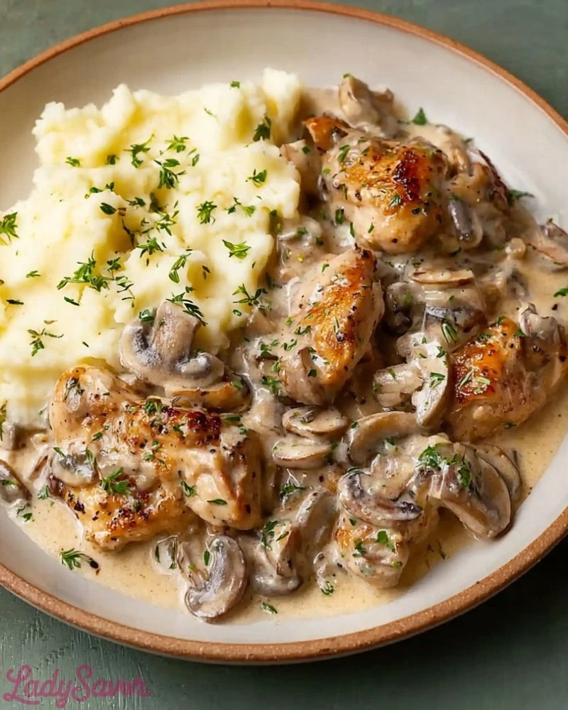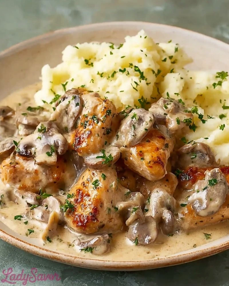 Start by patting your chicken dry before searing—it helps develop a golden crust. Use a hot pan and don’t overcrowd it to keep the chicken from steaming. When sautéing the mushrooms, let them brown without stirring too often for deeper umami flavor. And when it’s time to add sour cream, reduce the heat to prevent curdling. Finish with fresh parsley for a pop of color and brightness that balances the richness of the sauce.