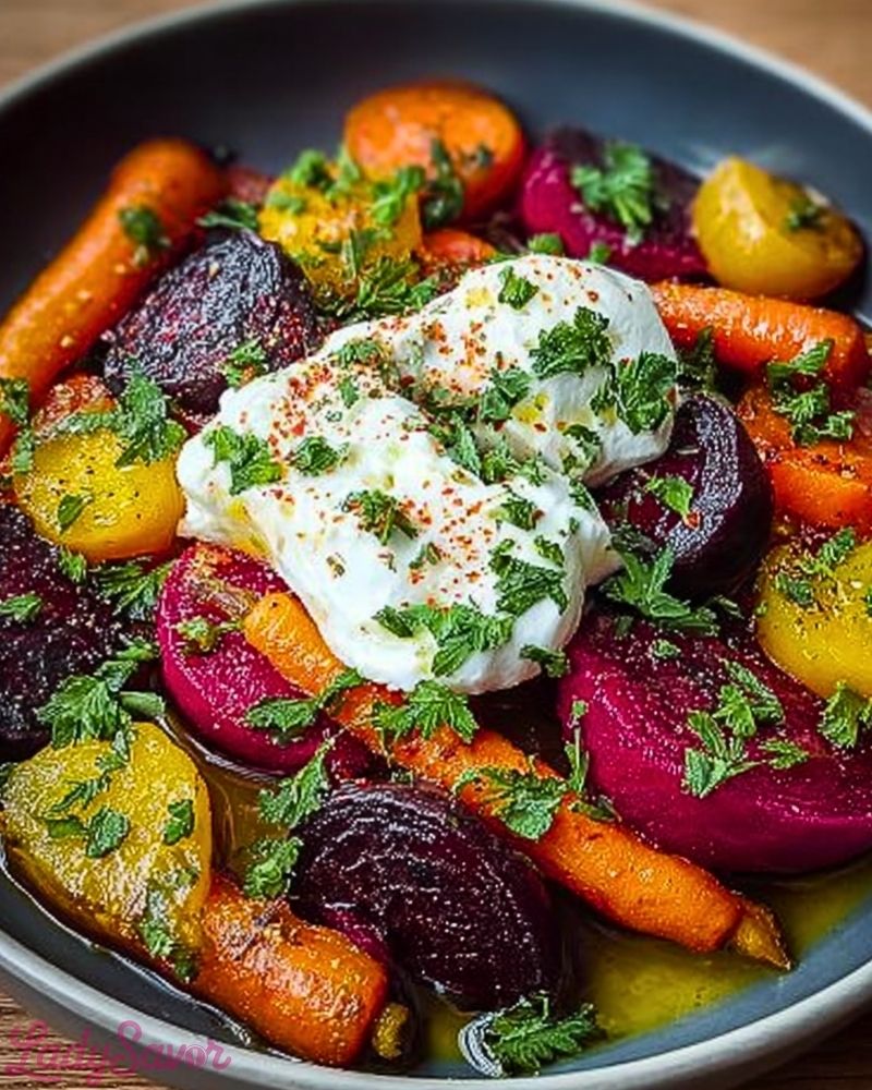 Roasted Beets and Carrots with Burrata Salad is a vibrant, flavorful dish that brings together wholesome ingredients and luxurious texture with minimal effort. Whether you’re making it as a starter, a stunning side, or a light main course, it offers visual appeal and a burst of sweet-savory balance in every bite. Once you try it, it’s likely to become a favorite for dinners, gatherings, or even next-day lunches.