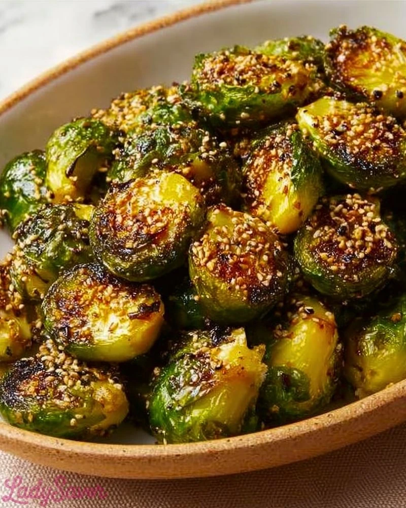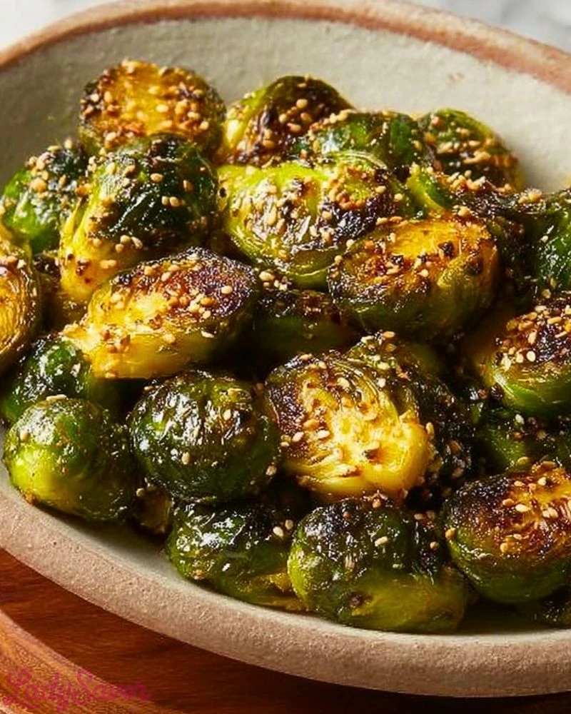 Once out of the oven, while still hot, you can toss the sprouts with Parmesan cheese, a drizzle of balsamic glaze, or a sprinkle of red pepper flakes. Garnish with toasted sesame seeds or a light zest of lemon for added brightness.