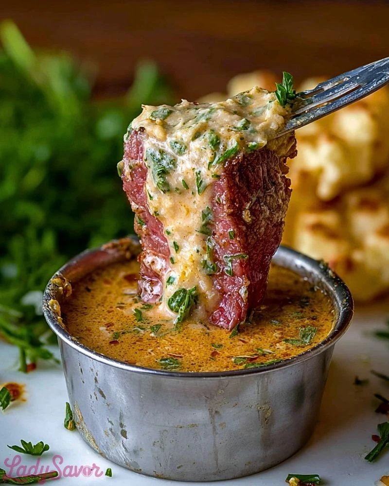 With its creamy texture and irresistible aroma, it’s not just a sauce—it’s a full-blown experience. Roasted garlic brings depth and umami, while fresh parsley, smoked paprika, and a kick of red pepper flakes tie it all together. It’s a simple blend, yet every bite tastes like you’ve stepped into a steakhouse with a secret weapon in the kitchen.