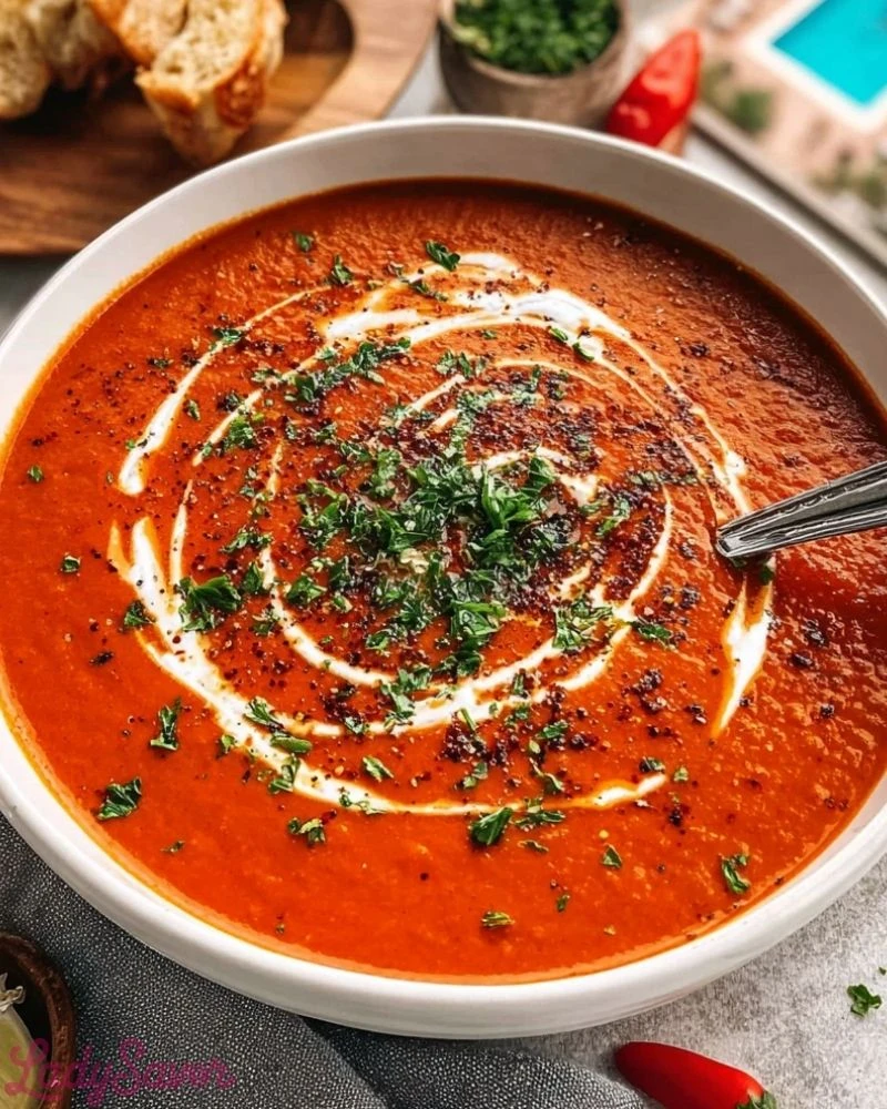 Velvety, vibrant, and packed with smoky depth, Roasted Red Pepper Soup is a soul-warming dish perfect for cozy nights or light lunches. With its rich color and naturally sweet undertones, this soup stands out as a flavorful, nutrient-dense comfort food that feels indulgent without being heavy. The blend of roasted red peppers, onions, garlic, and a touch of cream creates a silky texture that glides across the palate with every spoonful.
